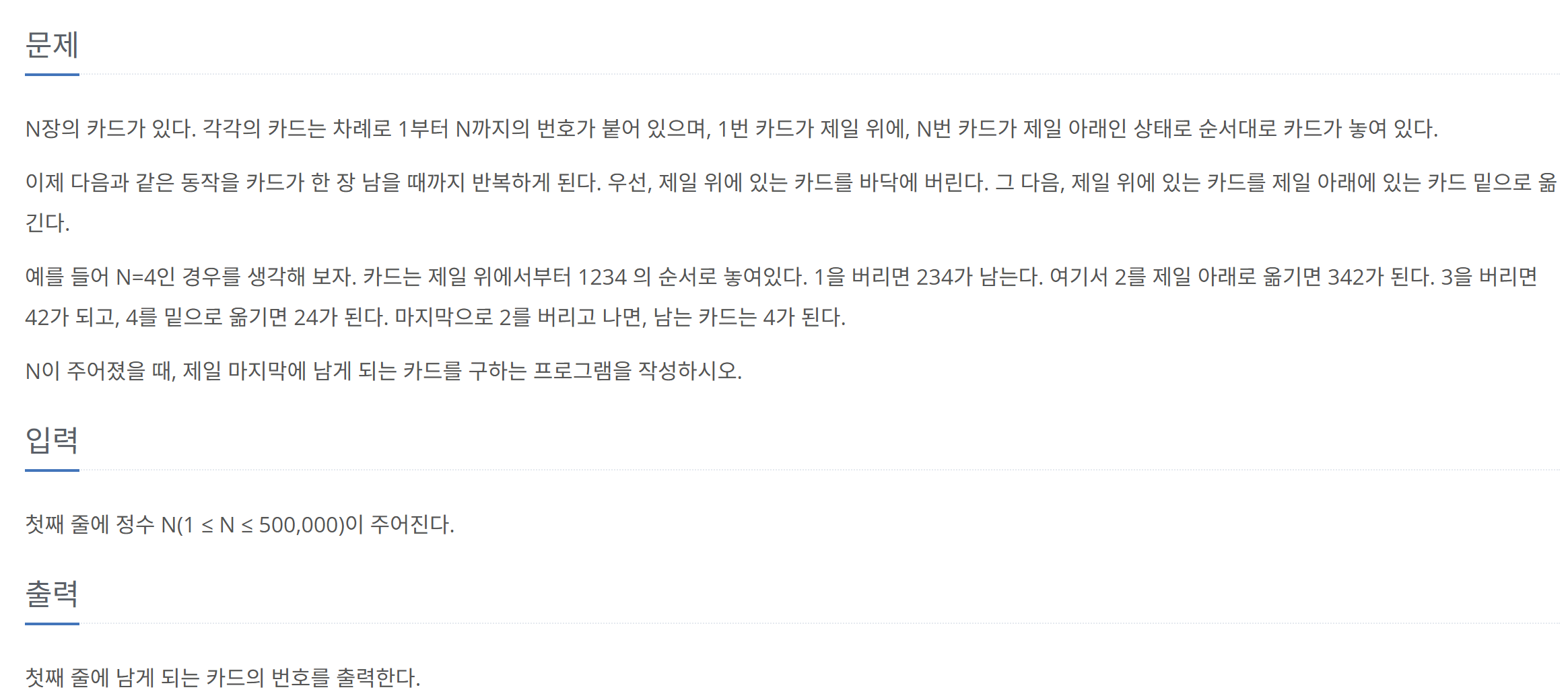 카드가 1부터 N까지 차례대로 쌓여있다.