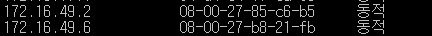2. 이를 받은 호스트(윈도우)에서 172.16.49.6에 대한 MAC주소를 바꾼다.