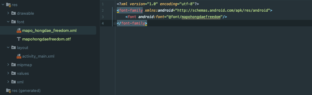 res 폴더 하위 폴더로 Font Folder를 생성해주면 됩니다.