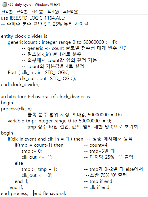 clk_out <= '1'; -- 25% 동안 '1' 출력