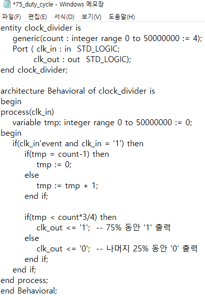 clk_out <= '0'; -- 나머지 75% 동안 '0' 출력