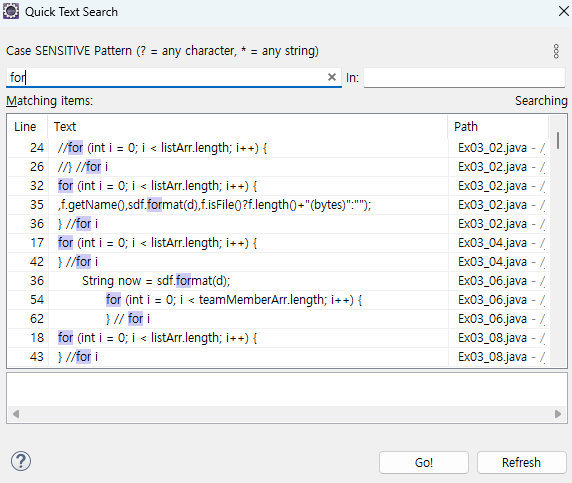 ctrl+shift+l 단축어 다음과 같이 이클립스 전체 파일에서 서치할 수 있다
