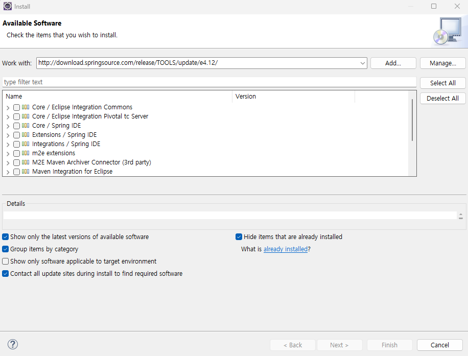 Work with 링크텍스트 http://download.springsource.com/release/TOOLS/update/e4.12/