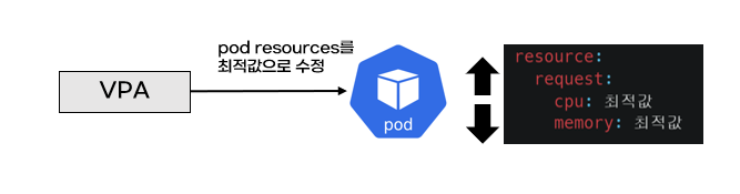 pod resources.request을 최대한 최적값으로 수정합니다. 수정된 request값이 기존 값보다 위 또는 아래 범위에 속하므로 Vertical라고 표현합니다.
