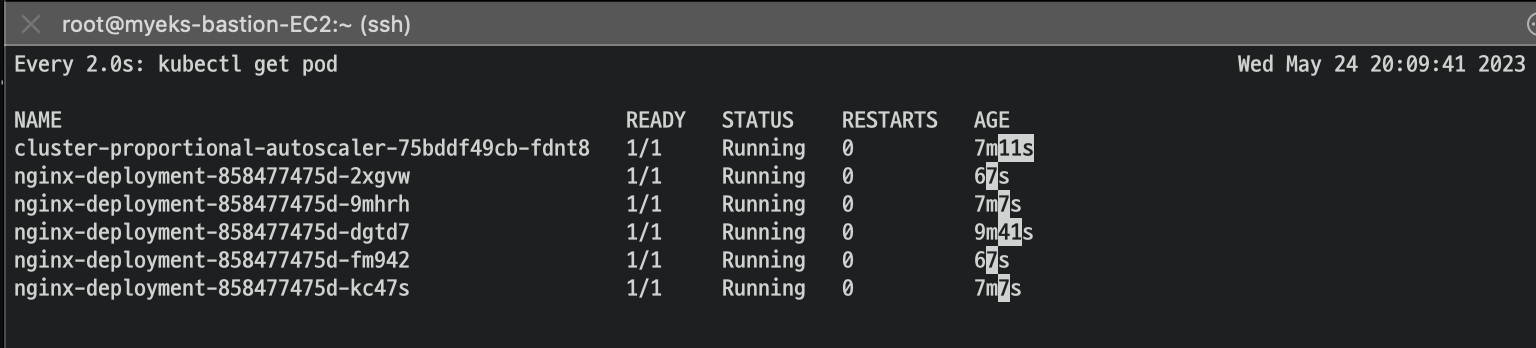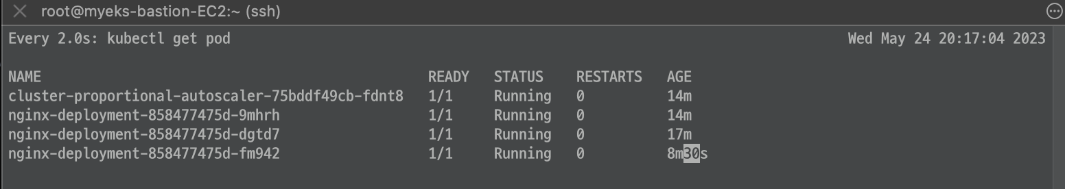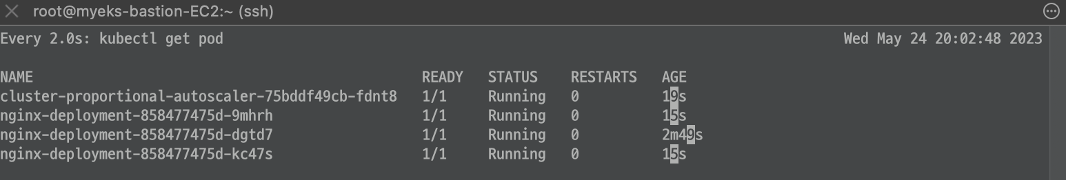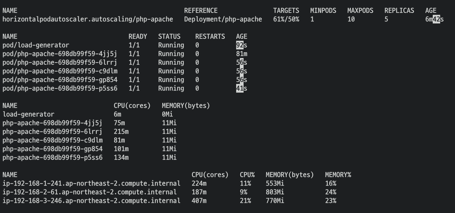 target의 수치가 올라가 replicas 가 늘어난 것을 확인해볼 수 있습니다.