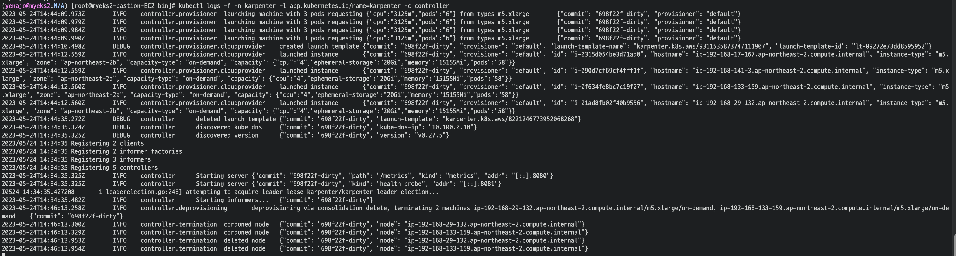 kubectl logs -f -n karpenter -l app.kubernetes.io/name=karpenter -c controller