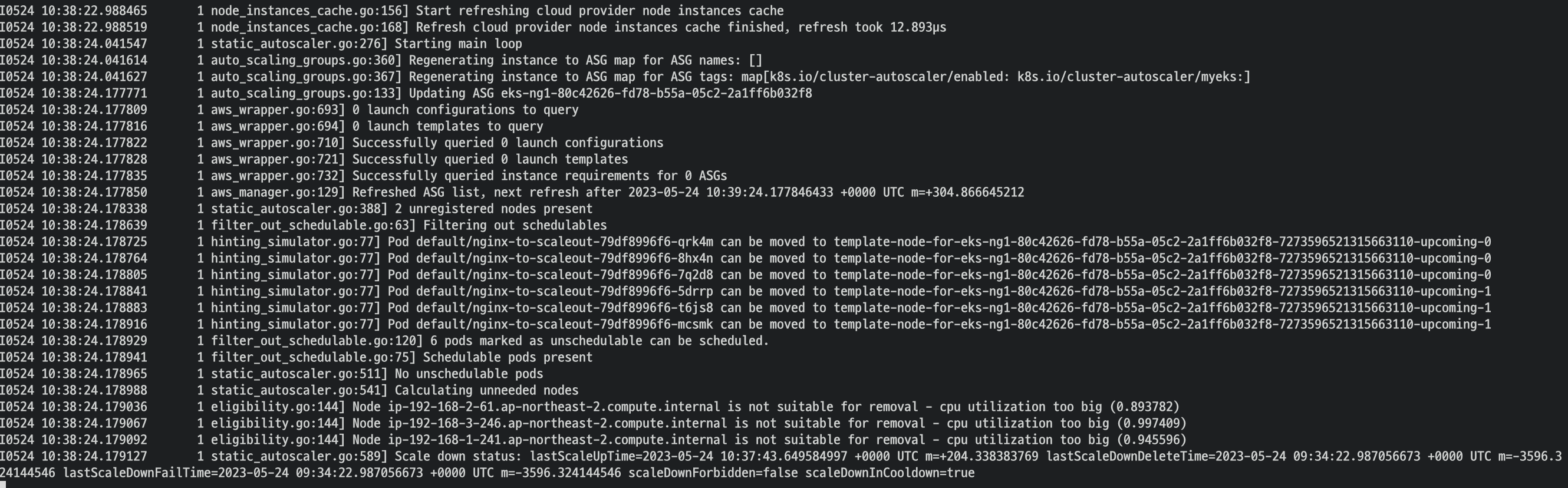 export ASG_NAME=$(aws autoscaling describe-auto-scaling-groups --query "AutoScalingGroups[? Tags[? (Key=='eks:cluster-name') && Value=='myeks']].AutoScalingGroupName" --output text)