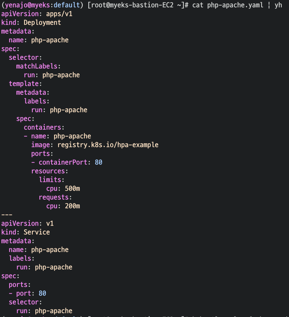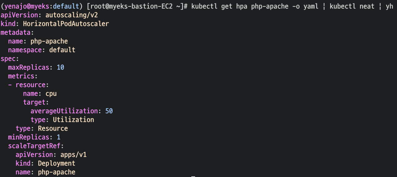 kubectl get hpa php-apache -o yaml | kubectl neat | yh