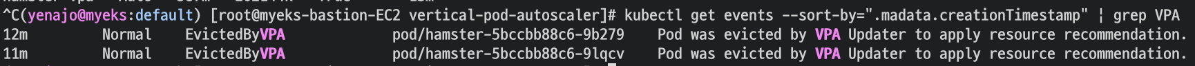 VPA에 의해 기존 파드 삭제되고 신규 파드가 생성됨