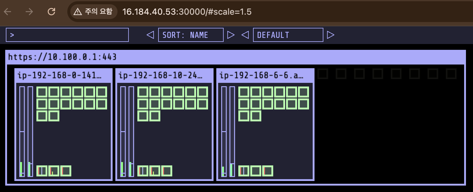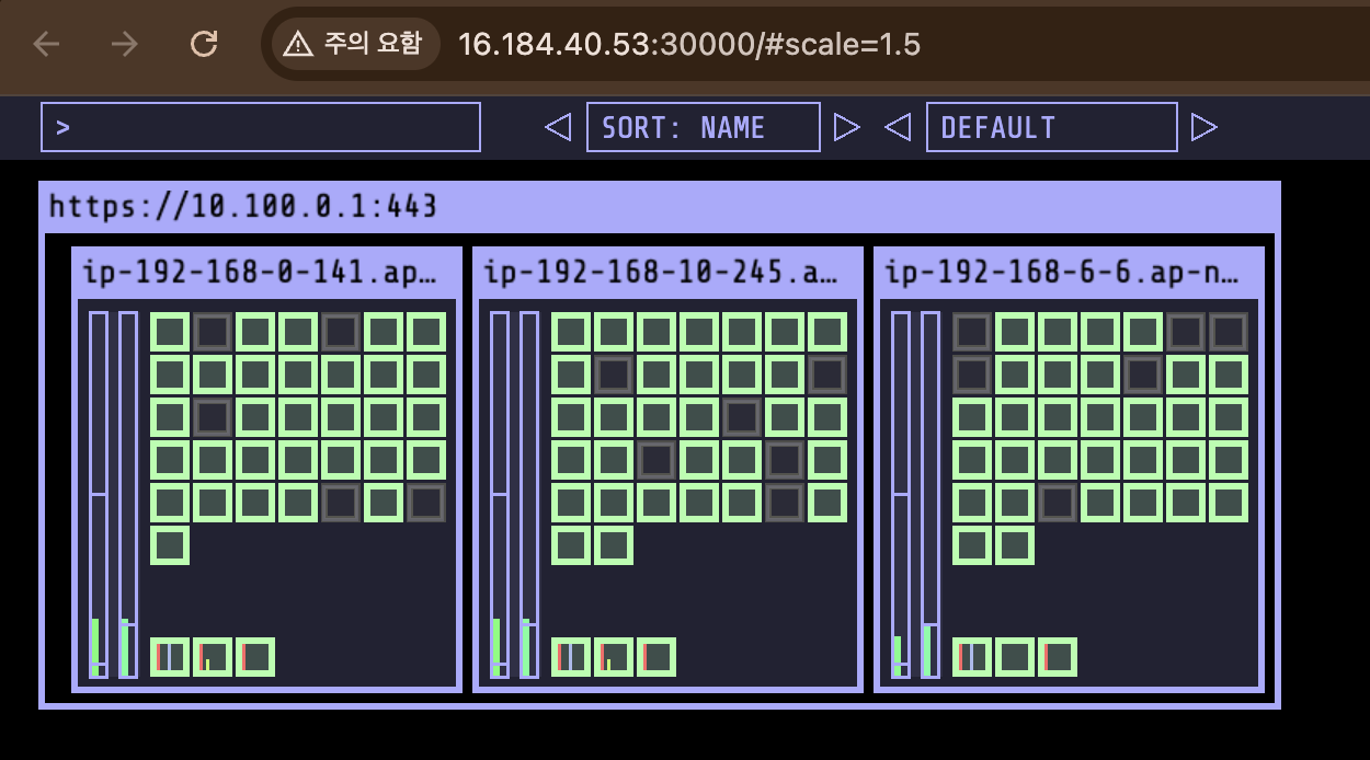 개발환경기준으로 노드는 192. 대역을 사용하고, pod는 10. 대역을 사용하고 있습니다.