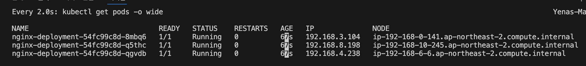-> 노드와 pod 같은 192.168 ip 대역을 사용중