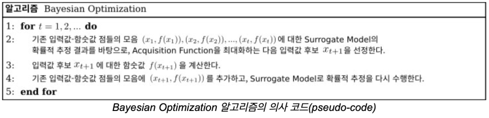 Bayesian Optimization(BO)은 원래 미지의 목적함수 f를 상정하고 f(x)를 최대로 만드는 최적해 x를 찾는 것을 목적으로 한다. 목적함수의 표현식을 명시적으로 알지 못하고, 하나의 함숫값을 계산하는데 오래 걸릴 경우 가정. 가능한 적은 수의 후보들에 대해 함숫값을 순차적으로 조사하여 f(x)를 최대로 만드는 최적해를 효과적으로 찾는 것이 주요 목표이다.