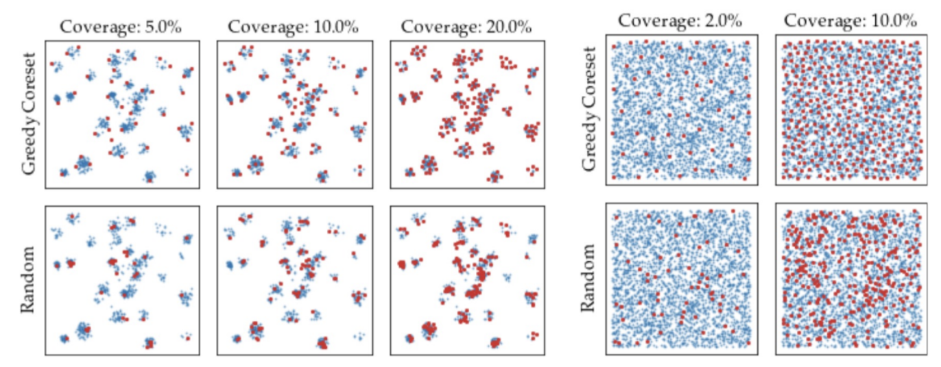 특정 Patch Features가 Coreset임을 판단하는 기준으로 Greedy Search 알고리즘 사용. (Random Subsampling에 비해 정상 features가 고르게 선택됨)