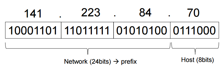 prefix의 24bit를 이용하여 Network를 정의하고 host의 8bit를 이용하여 host를 구분한다.