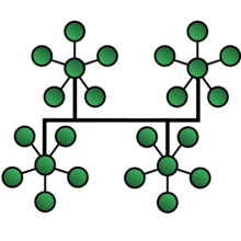 각 노드가 하나의 중심 노드에 연결되어 Star Topology를 이루며, 중심 노드들은 Bus Topology 로 연결되어 있는 형태를 이룬다.