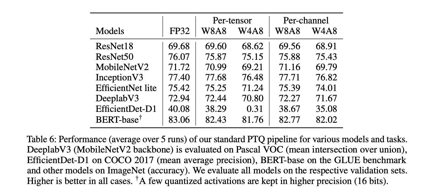 per-channel quantization은 성능을 크게 향상할 수 있음을 보였다.
