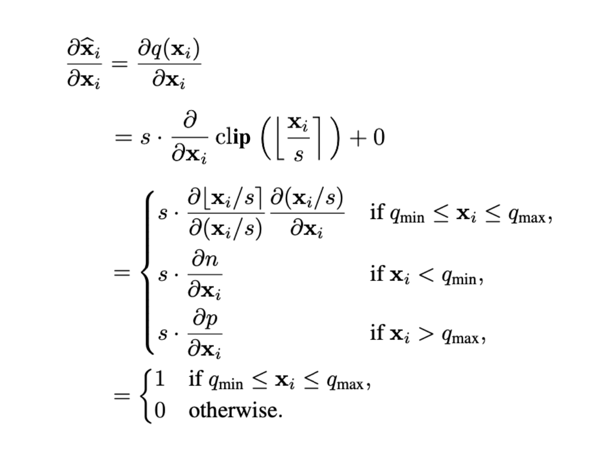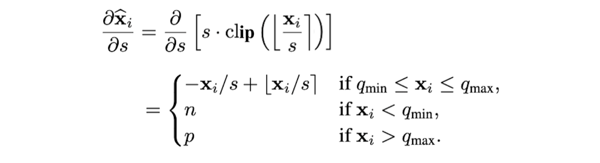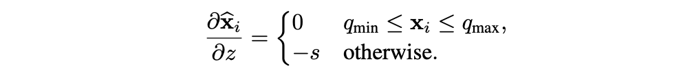 이후 연구에선, STE를 사용해 quantization parameter인 에 대해 gradient를 계산한다.