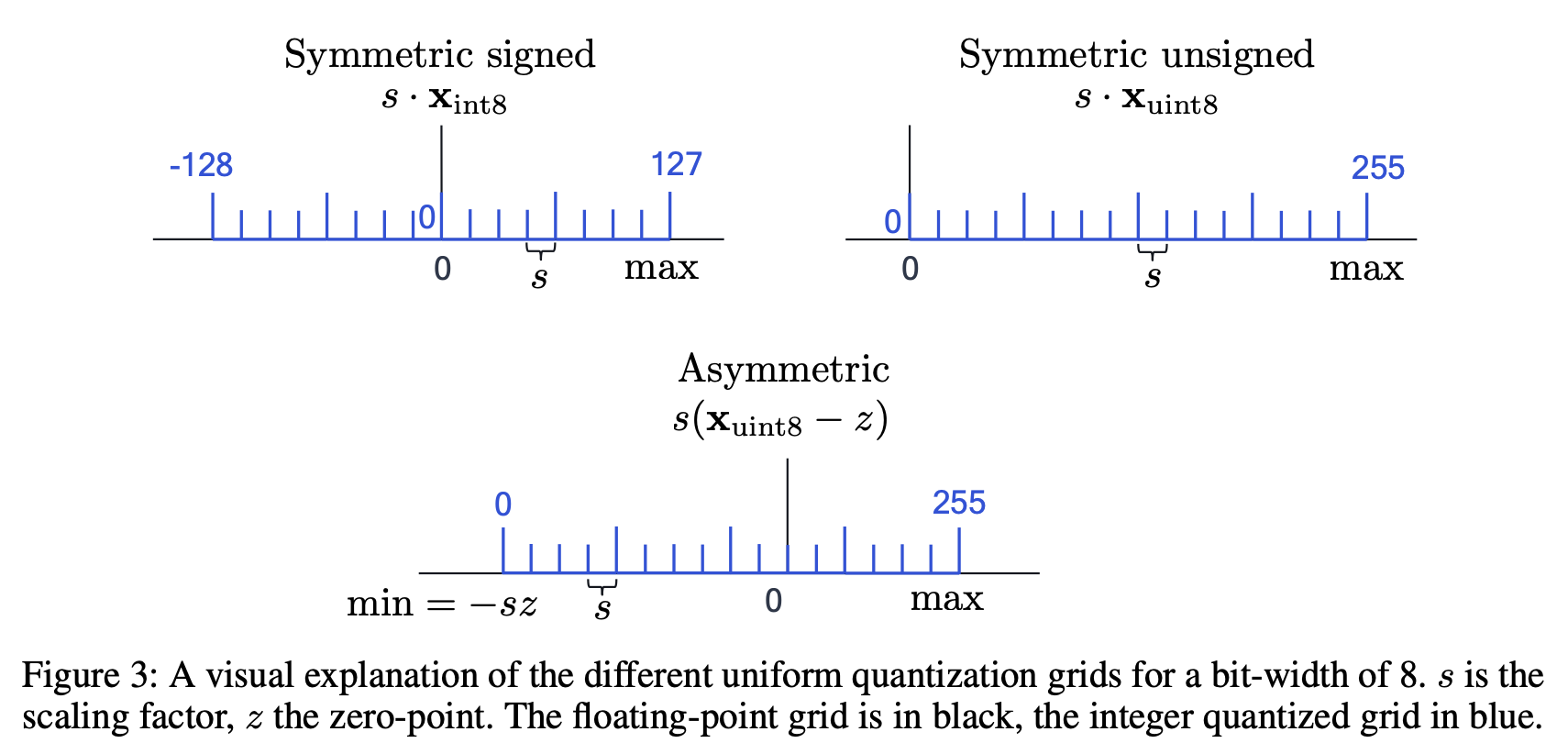 zero-point : real zero가 error 없이 quantized 되도록 한다.