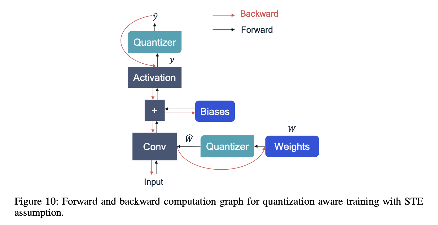 QAT에서의 forward pass와 backward pass를 간단하게 computational graph로 나타내면 다음과 같다.