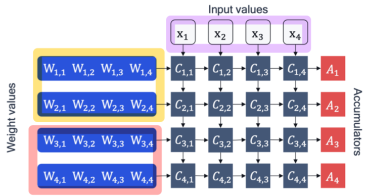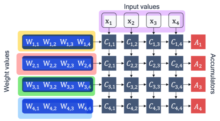 이때 accumulator는 higher bit-width(주로 32-bits)를 유지하는 것이 중요한데, 이유는