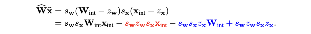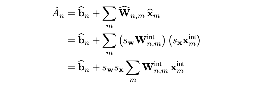 weight와 activation을 quantize한 accumulation 수식은 다음과 같다.