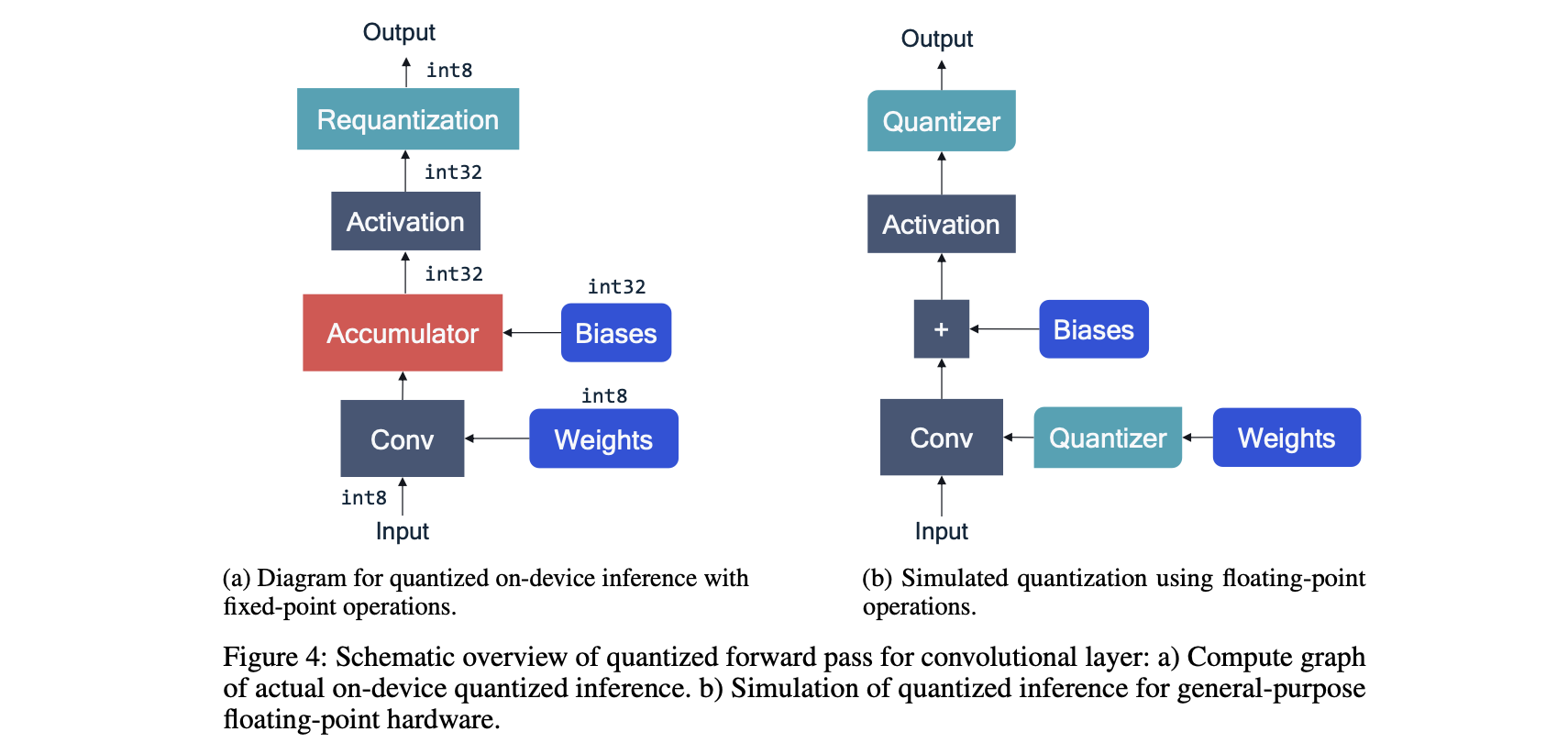 Figure 4 (a)는 fixed-point hardware에서 동작하는 과정이고,