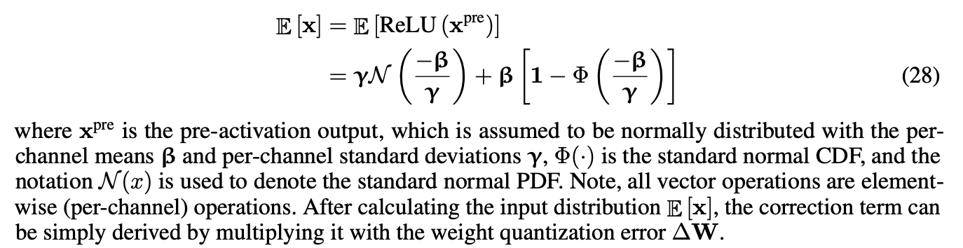 bias quantization의 경우 의도적으로 무시하는데, 이는 bias가 주로 higher bit-width(32-bits)에 저장되고, bias의 scale factor는 weights와 activations의 scale factor에 따라 조정돼기 때문이다.