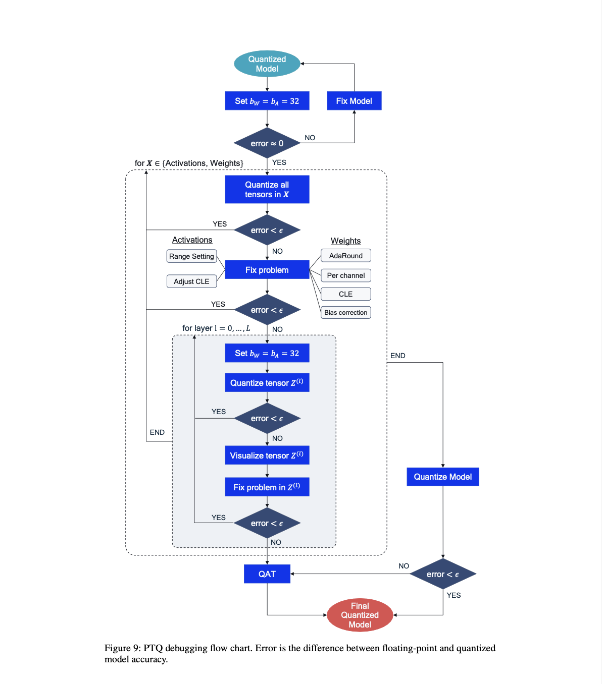 "PTQ와 QAT 각각을 위한 standard pipeline을 제시하고 debugging workflow를 제안"