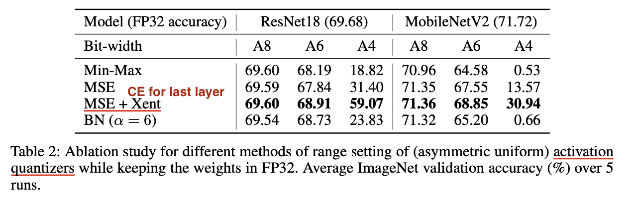 통상적으론, layer-wise MSE based criteria를 사용해 모든 quantization parameter를 setting하는 것을 추천한다.