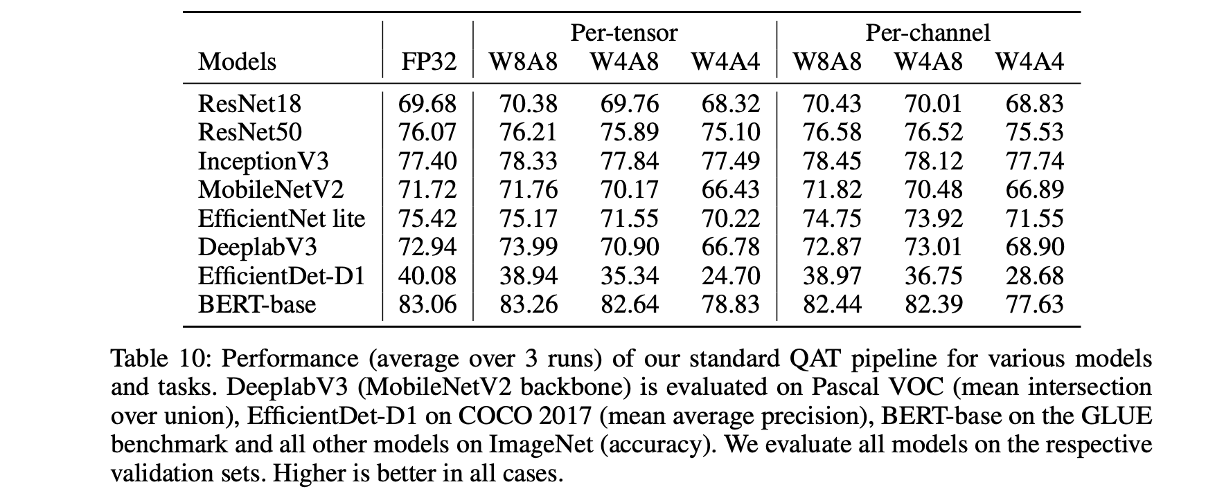 결론을 먼저 말하면, PTQ 기술을 적용하는 것이 초기 단계에서는 이점이 있을 수 있지만, 장기적인 QAT 결과에는 대부분의 경우 큰 영향을 미치지 않았다.