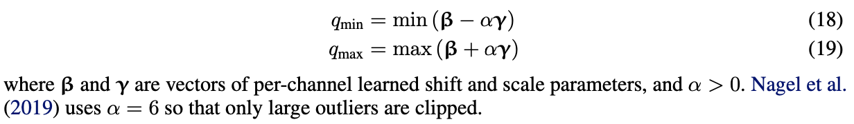 QAT 연구 초기에는 weight와 activation의 quantization range는 주로 min-max range 방법을 사용해 각 iteration마다 update했다.