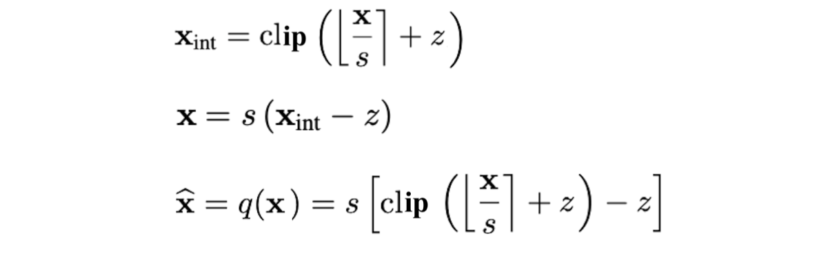 위에서 zero-point를 정수로 한정했지만, zero-point를 learnable하게 만들기 위해 real number로 바꾸고, rounding operator를 적용하여 quantization function을 작성하면 다음과 같다.
