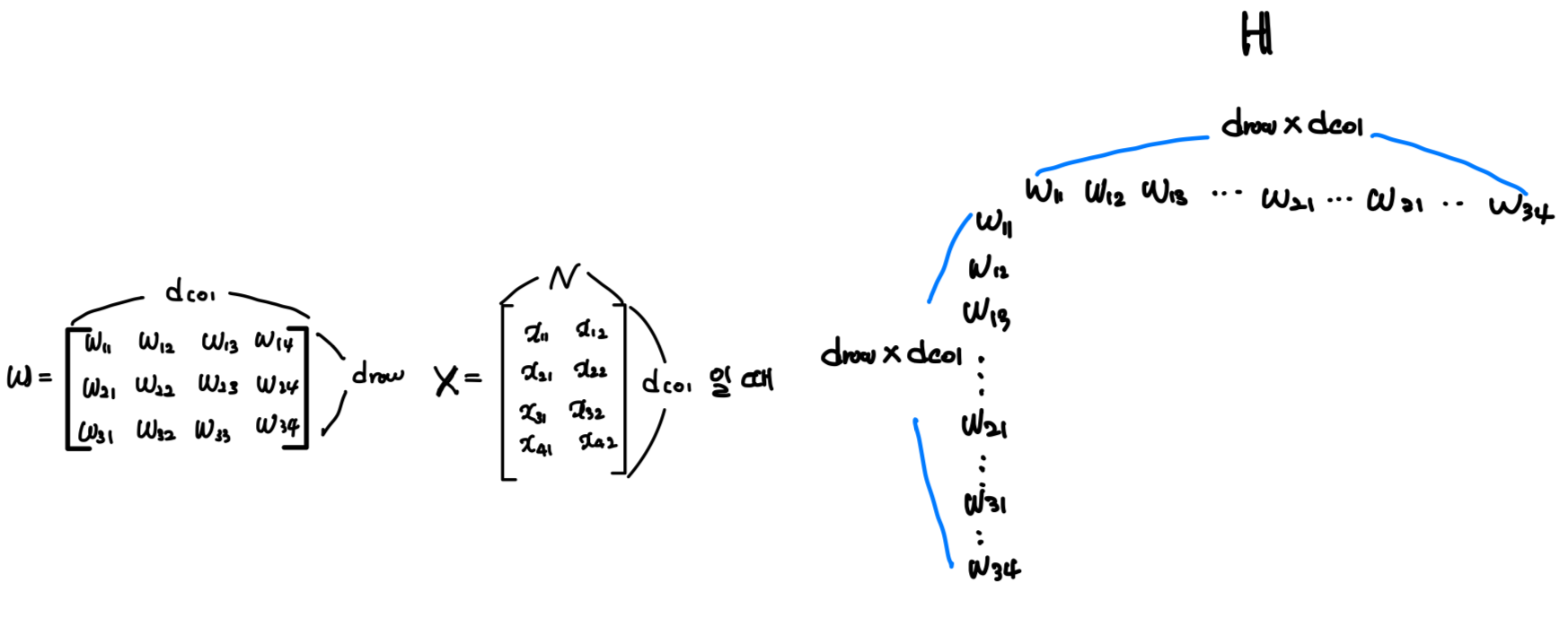 Weight의 dimension을 d{row}, d{col}이라고 할 때,