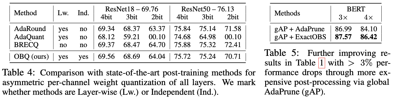 또한, 이전 연구(WoodFisher)와 달리, 우리는 어떠한 근사에도 의존하지 않기에, OBC의 technique들이 정확하다는 점을 강조한다.
