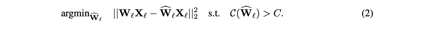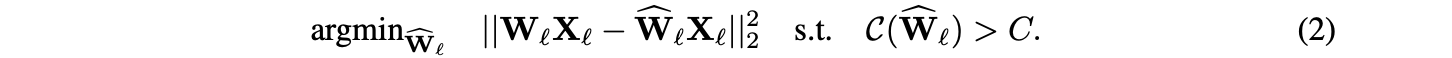 layer 에 대해, weights , layer inputs 이고, compressed weights를 라고 하면,