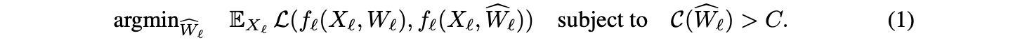 더 formal하게 말하면, compressed weight 은 어떤 loss 로 측정된 Expected layer output change를 최소화해야 하며,