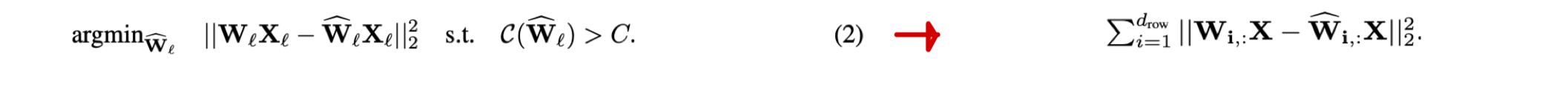Layer-wise compression의 목표는 원래의 weight와 가능한 한 유사하게 수행되는 의 "compressed" 버전을 찾는 것이다.
