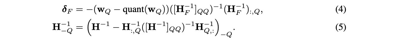 그 이유는, OBQ의 greedy 방법은 초기에 Q error가 큰 weight 수를 줄일 수 있지만, 후반부에 이르면, 보상을 위해 조정할 수 있는 weight가 거의 남아 있지 않게 되어, 후반부에 Q되는 weight들은 더 큰 error를 발생시킬 수 있다.