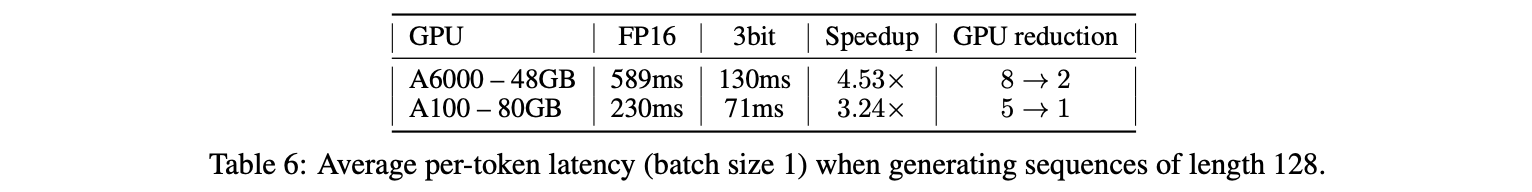 모든 model (1750억 parameter variant 포함)을 80GB memory를 가진 단일 NVIDIA A100 GPU를 사용하여 quantize했다.