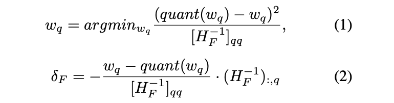 Optimal Brain Compression(OBC)을 기반으로, layer-wise Q error의 Hessian 기반 metric을 사용해, element-wise Q와 compensation을 한다.