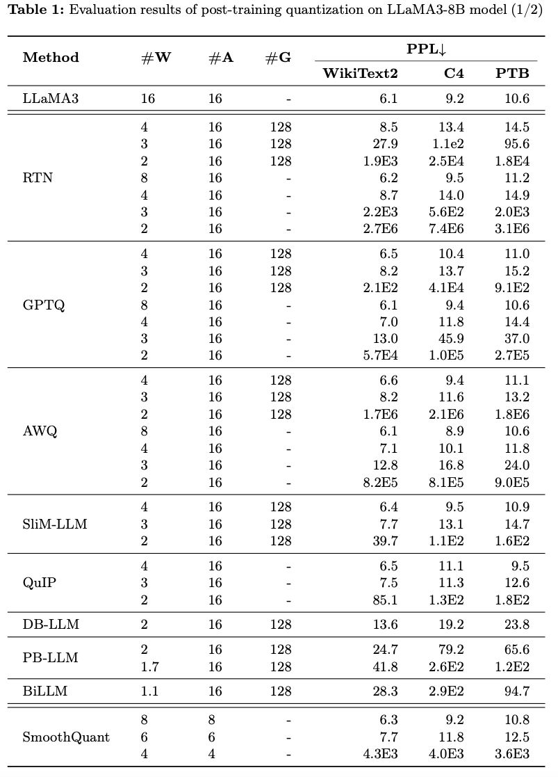1) PTQ of LLaMA3