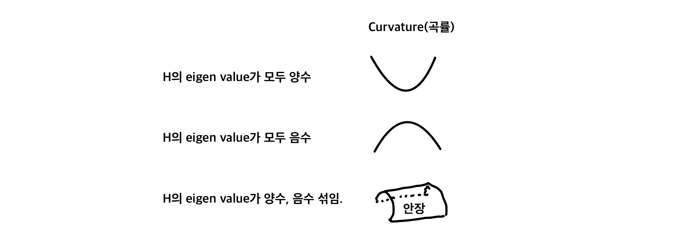 H의 eigen value는 f의 curvature(얼마나 휘었는지)를 결정한다.