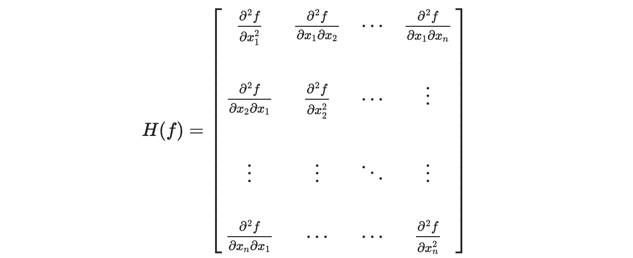 xk에서 다변수 2차 테일러 전개는 다음과 같다. 이때 Hk는 Hessian matrix를 의미한다.