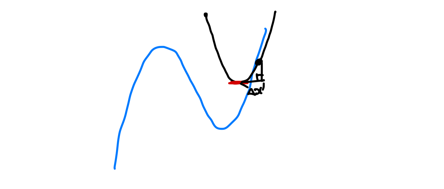 하지만 뉴턴법은 2차 도함수를 분모로 가지고 있기 때문에, 2차 미분이 0이 되면 업데이트를 할 수 없다. 이는 국소적으로 수평선인 경우에 발생하게 되는데, 2차 미분이 0에 가깝더라도 문제가 발생한다. 2차 미분의 값이 매우 작기 때문에 업데이트가 멀리 일어나게 되고, overshoot이 발생할 수 있다. 이는 아래 그림과 같이 근사식의 최소값이 최적해로부터 멀리 떨어져 있을 경우에 발생하게 된다.