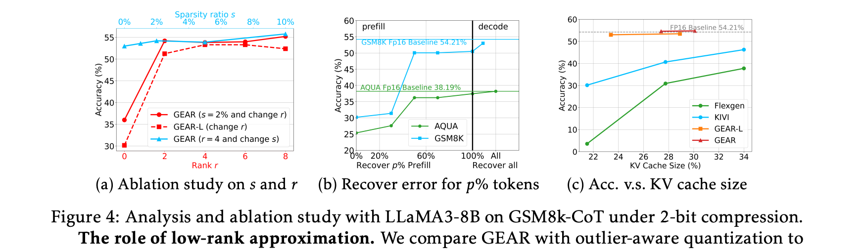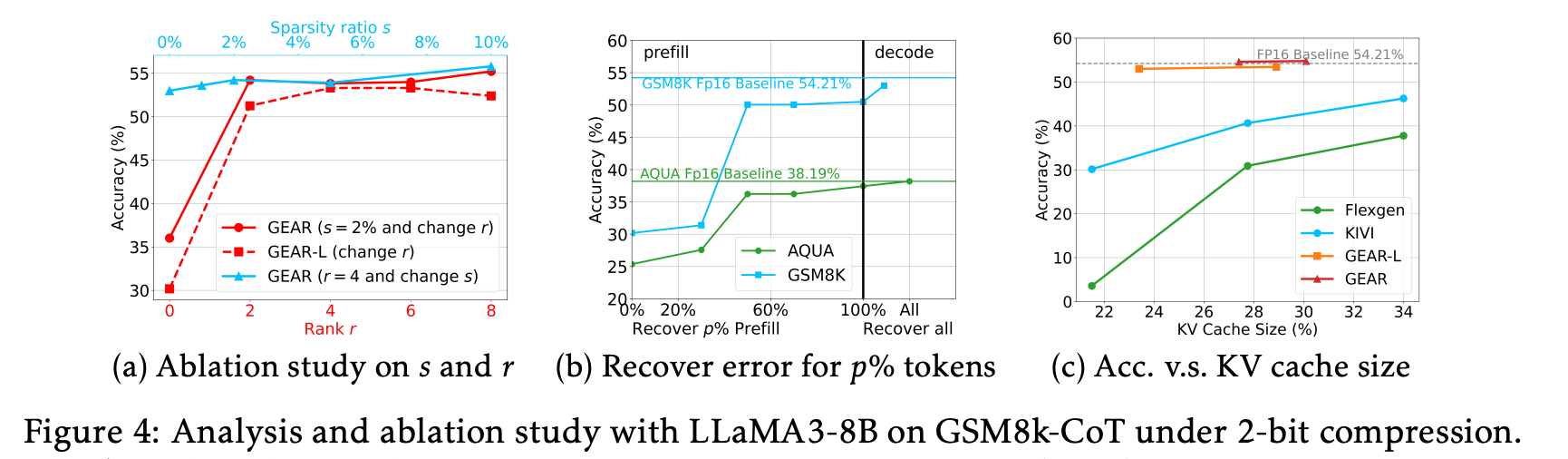 GEAR의 경우, ✅ prefill phase에서 sparsity ratio 를 2%로, rank 로 고정.