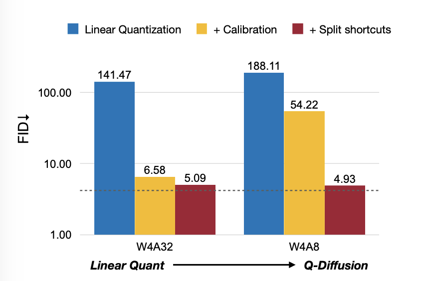 Linear Quantization과 Q-Diffusion 모두 FP32와 비교해서