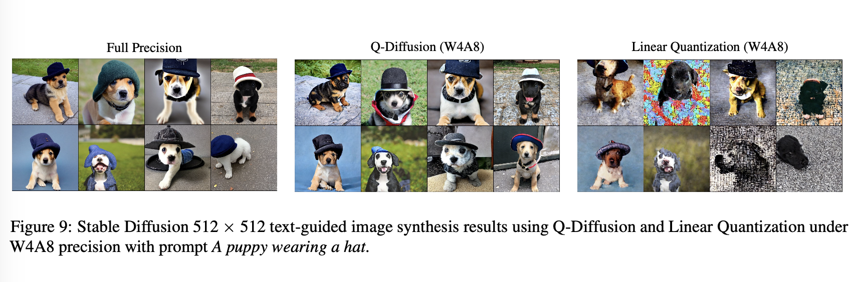 나아가, Q-Diffusion 방식을 Stable Diffusion으로 text-guided image synthesis에 적용했다.