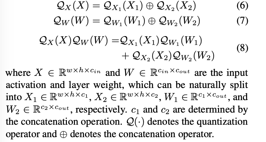 우리는 concatenation 이전에 quantization을 수행하는 "split" quantization technique을 제안한다.