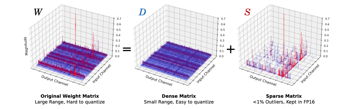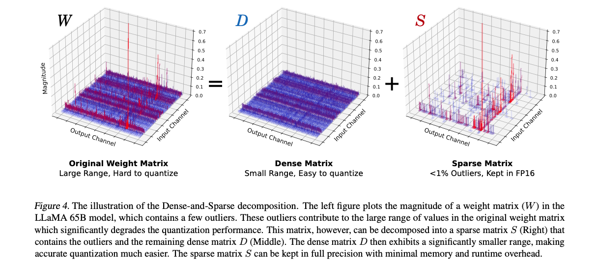 dense-and-sparse decomposition 전략을 Q 성능을 높이기 위해서, weight matrics에 적용한 것이 우리가 처음