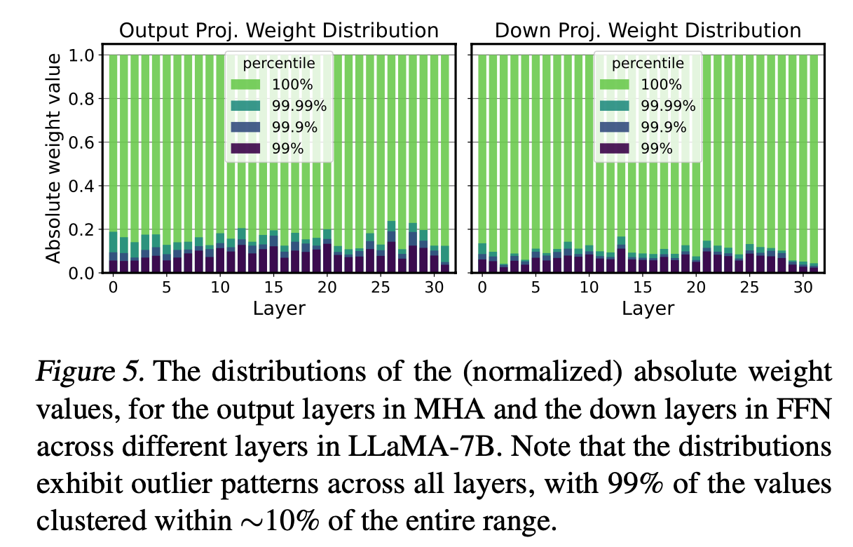 LLM의 weight distribution은 non-uniform pattern을 가짐.
